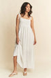 This smocked sleeveless maxi cami dress is a perfect blend of comfort and style. The smocked bodice provides a flattering and figure-hugging silhouette, while allowing for ease of movement. The sleeveless design and maxi length add a breezy and effortless feel, making it a versatile piece for casual outings or summer events. Whether dressed up with accessories or worn on its own, this cami dress is sure to become a go-to favorite in your wardrobe.