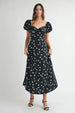 This polka dot puff sleeve midi dress is a charming and stylish choice for any occasion. The polka dot pattern adds a playful and timeless touch to the classic midi dress silhouette. The puff sleeves bring a romantic and elegant flair to the dress, making it a standout piece that can be dressed up or down with ease.
