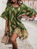 Paisley Print Tie Neck Half Sleeve Mini Dress