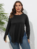 Plus Size Round Neck Long Sleeve Slit T-Shirt