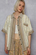 POL Printed Button Down Patchwork Short Sleeve Shirt