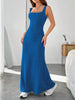Ribbed Knit Square Neck Sleeveless Maxi Dress