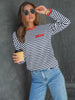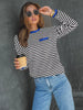 Striped Long Sleeve Sweater with Contrast Ribbed Trim