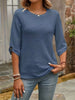 Textured Waffle Knit Three-Quarter Sleeve T-Shirt