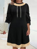 Plus Size Contrast Trim Drawstring Long Sleeve Mini Dress