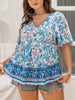 Plus Size Printed V-Neck Half Sleeve Blouse