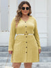 Plus Size Ribbed Buttoned V-Neck Long Sleeve Dress
