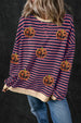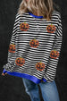 Pumpkin Striped Round Neck Long Sleeve Sweatshirt