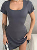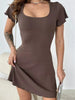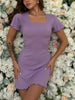 Ribbed Back Lace Up Short Sleeve Mini Dress