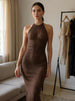 Ribbed Halter Neck Bodycon Maxi Dress