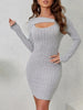 Ribbed Knit Cutout Long Sleeve Bodycon Dress