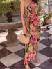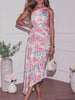 Single Shoulder Floral Pleated Dress
