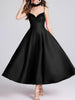 Sweetheart Spaghetti Strap Midi Dress with Collar