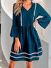 Tie-Neck Long Sleeve Mini Dress with Trim Detail