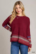 Umgee Long Sleeve Round Neck Knit Top with Side Slits and Stitch Detail