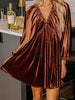 V Neck Puff Sleeve Velvet Dress