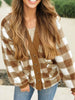 Checkered Sherpa Loose Knit Cardigan with Pockets