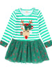 Children's Christmas Reindeer Applique Striped Long Sleeve Dress