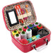 Includes needles, scissors, thimble, seam ripper, tape, and threads.