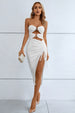 Cutout Strapless Drawstring Detail Split Bandage Dress