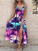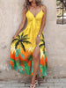 Feather Print Spaghetti Strap Split Dress