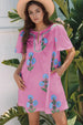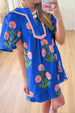 Floral Notched Summer Mini Dress with Striped Trim