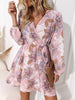 Floral Print Surplice Balloon Sleeve Dress
