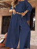 Full Size Boat Neck Top and Wide Leg Pants Set Plus Size