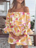Full Size Floral Off-Shoulder Flounce Sleeve Mini Dress Plus Size