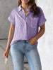 Full Size Striped Button-Up Casual Shirt with Pocket Plus Size