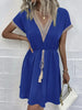 Full Size Tassel V-Neck Short Sleeve Dress Plus Size