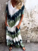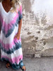 Full Size Tie-Dye V-Neck Midi Dress with Pockets Plus Size
