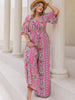 Plus Size Printed Half Sleeve Wide Leg Jumpsuit
