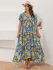 Plus Size Printed V-Neck Short Sleeve Maxi Dress