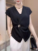 Plus Size Wrap Front Blouse with Decorative Button Detail