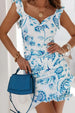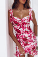 Printed Ruffled Sweetheart Neck Mini Dress