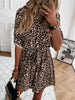 Printed Tie Waist Roll-Tab Sleeve Mini Dress