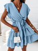 Ruffled Surplice Cap Sleeve Mini Dress