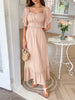 Square Neck Puff Sleeve Ruffle Trim Maxi Dress