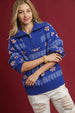 Umgee Floral Patterned Jacquard Quarter-Zip Pullover Sweater